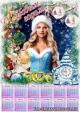 Настенный календарь на 2026 год - Новогодний винтаж PSD + 2 PNG + 2 JPG | 4961 x 3508 | 3508 x 2480 | 300 dpi | 161,93 MB Автор: sergey1971